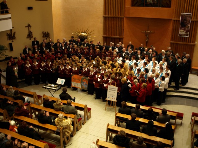 Prezentacji chóralnego kolędowania nadano wdzięczny tytuł: „Anioły Pogranicza” – „Anieli pohraničia”. Chóry polskie i słowackie spotkały się na wspólnym kolędowaniu 3 stycznia w Śvidniku i 9 stycznia w Krośnie. Ci z pośród Nas, którzy znaleźli czas, aby wysłuchać koncertu kolęd w krośnieńskiej Farze, zapewne zaświadczą o niepowtarzalnym klimacie jaki został wytworzony przez chórzystów pięciu zespołów śpiewaczych, które wykonując kolędy i pastorałki dostroiły się do miejsca jakim jest kościół farny i czasu określonego duchowym wymiarem Świąt Bożego Narodzenia.