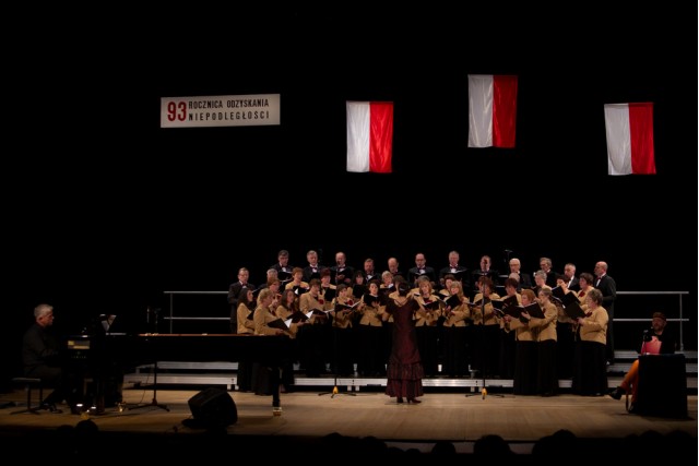 on w wykonaniu chóru z towarzyszeniem orkiestry i… rozśpiewanej