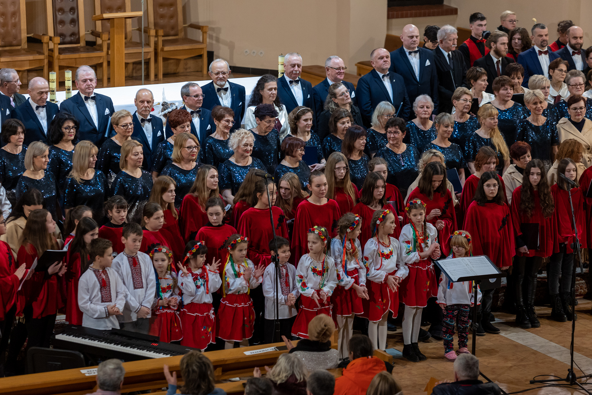 Niezwykły był też finał koncertu w wykonaniu ponad 170 artystów pod batutą naszej niezawodnej dyrygentki Marioli Rybczak. W szczelnie wypełnionej świątyni, niezwykle uroczyście i potężnie zabrzmiały strofy tytułowego dla EKC kanonu „Soli Deo” jak również z akompaniamentem organów – „Adeste Fideles.