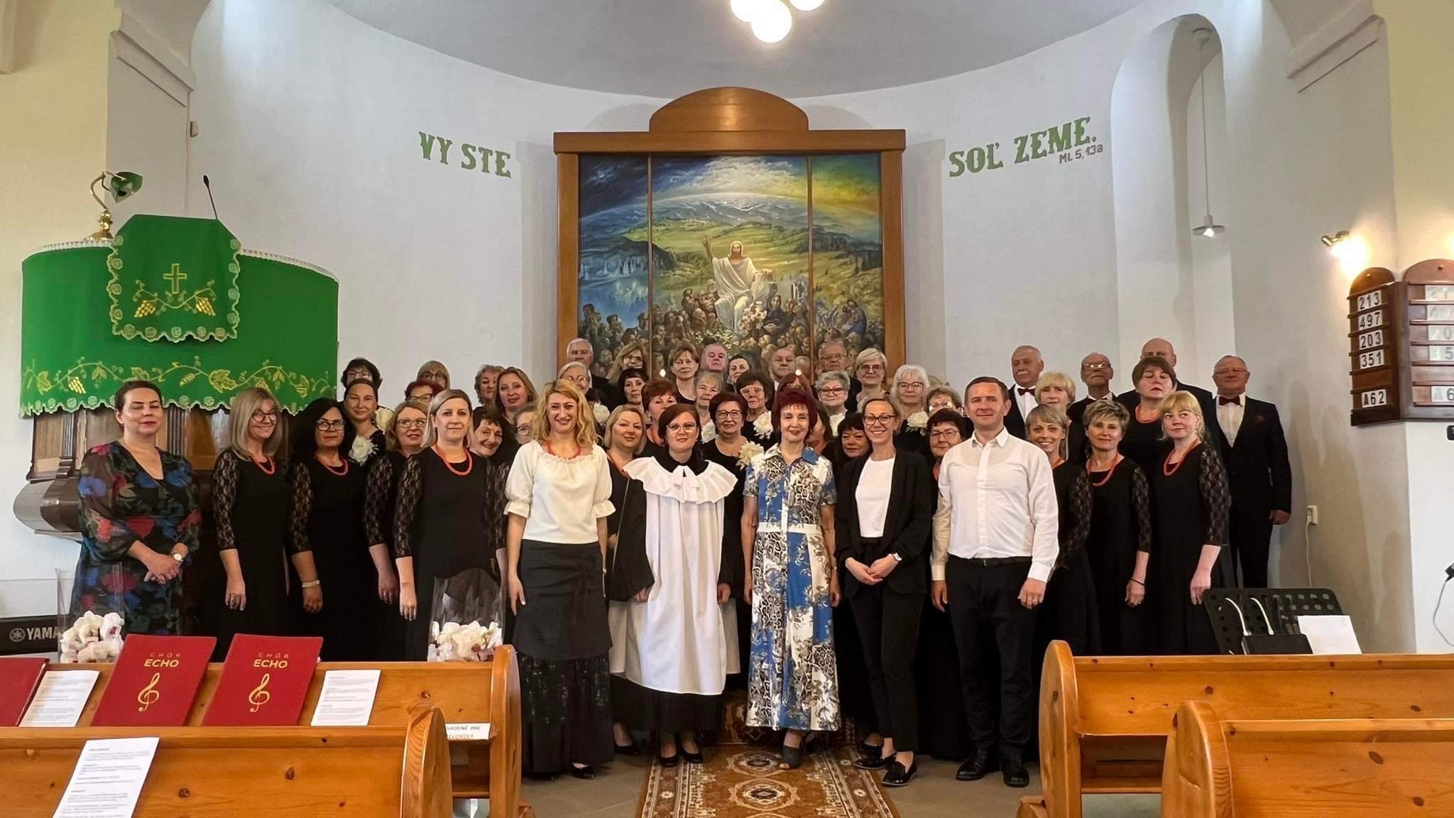 W koncercie wystąpiły 4 chóry : żeński z Presova oraz mieszane z Novej Bani, Zvolena oraz nasze krośnieńskie Echo. Wykonaliśmy 6 utworów liturgicznych i sakralnych zbierając wiele ciepłych słów, gratulacji i uznania. Nie przeszkodziła nam barowa aura, a swoją klasę pokazały nasze soprany. Pani dyrygent zadbała o artystyczny wyraz, była dobra dynamika, współbrzmienie i kontakt z dyrygentem. Partię solową Anima Christii pięknie wykonała sopranistka, Ewa Kłos.