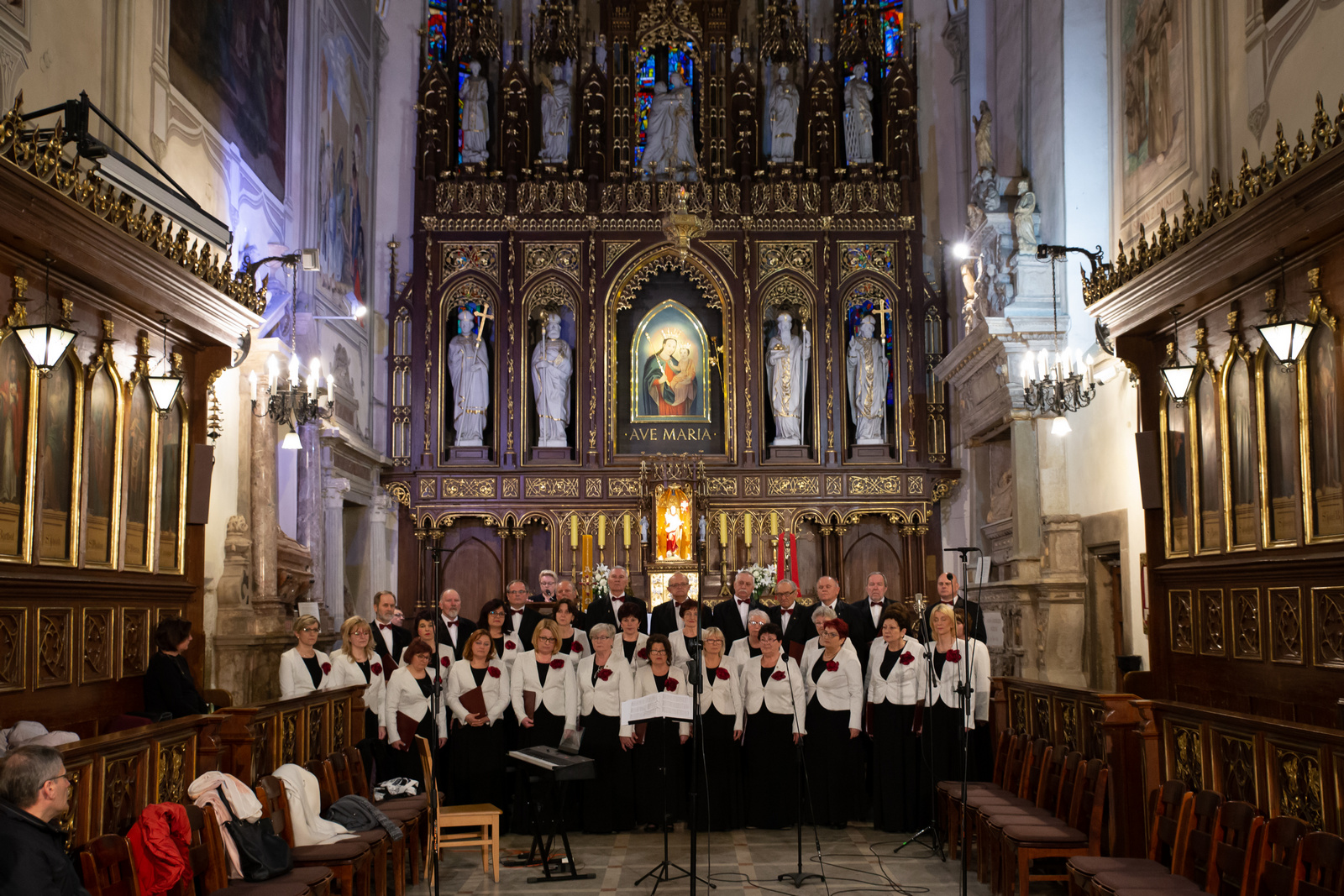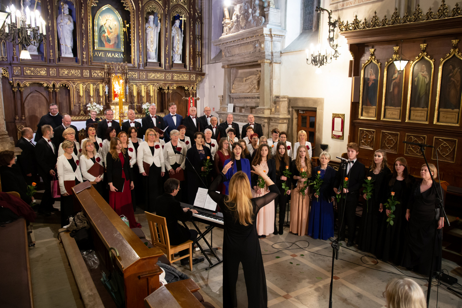 Nasz chór, jako gospodarz wieczoru zaprezentował utwory sakralne i pieśni Maryjne. Swej premiery doczekał się m.in. utwór Antonio Lottiego – „Regina coeli”, a szczególnie ciepły odbiór zyskały interpretacje „Bogarodzico Dziewico – Ks. J. Żukowskiego oraz Ave Maria – G. Cacciniego z partią sopranową p. Moniki Fabisz oraz akompaniamentem p. Macieja Janasa. Uczniowie Społecznej Szkoły Muzycznej II Stopnia w Krośnie wykonali utwory autorstwa J.S. Bacha, G. Faure, C.Saint-Saens’a, Ch.D. Dancla, V. Belliniego i H. Busser’a. Nie zbrakło utworów Stanisława Moniuszki. Aneta Aszlar wykonała utwór „Czy powróci”, a Michał Kondyjowski „Krakowiaczka”. Zespół Wokalny Społecznej Szkoły Muzycznej w Krośnie, prowadzony przez Panią Martynę Polakowską, złożony z uczniów i nauczycieli zaprezentował "Ave Maria" Davida Hamiltona, "AveVerum" Karla Jenkinsa, "Godzien jesteś" w opracowaniu Macieja Polakowskiego. Finał koncertu stanowiło wykonanie przez chór Echo oraz Zespół Wokalny SSM utworu „Uwierz Polsko”, do słów i muzyki krośnianki – p. Moniki Brewczak. Dyrygowała Mariola Rybczak, pełniąca również rolę kierownika artystycznego koncertu. Całość programu przeplatały recytacje wierszy o tematyce maryjnej w wykonaniu T. Borkowskiego oraz A. Bartosika, a koncert poprowadziła Aleksandra Dućka. Koncert spotkał się z żywym przyjęciem zebranej publiczności i był na wysokim poziomie. A.B