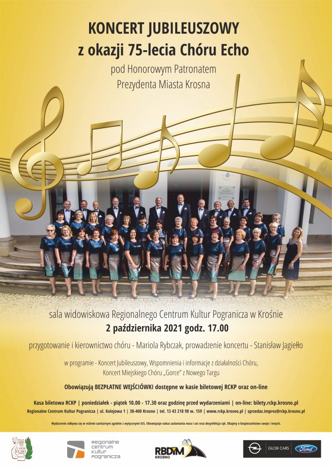 Uczestnicząc w koncertach Chóru Mieszanego „Echo”, łatwo dostrzec jaka atmosfera w nim panuje i czym z publicznością chcą dzielić się wokaliści i muzycy. Siedemdziesiąt pięć lat występów, inicjowania licznych muzycznych wydarzeń i dzielenia sceny z wykonawcami z całej Polski – jeśli nie świata – znajduje swoje odbicie w zawsze zachwyconej koncertami i samym chórem widowni. Tym milej jest zaprosić publiczność do udziału w koncercie jubileuszowym i po raz kolejny wzniesieniu toastu w postaci braw za kolejne lata na krośnieńskich i światowych scenach.