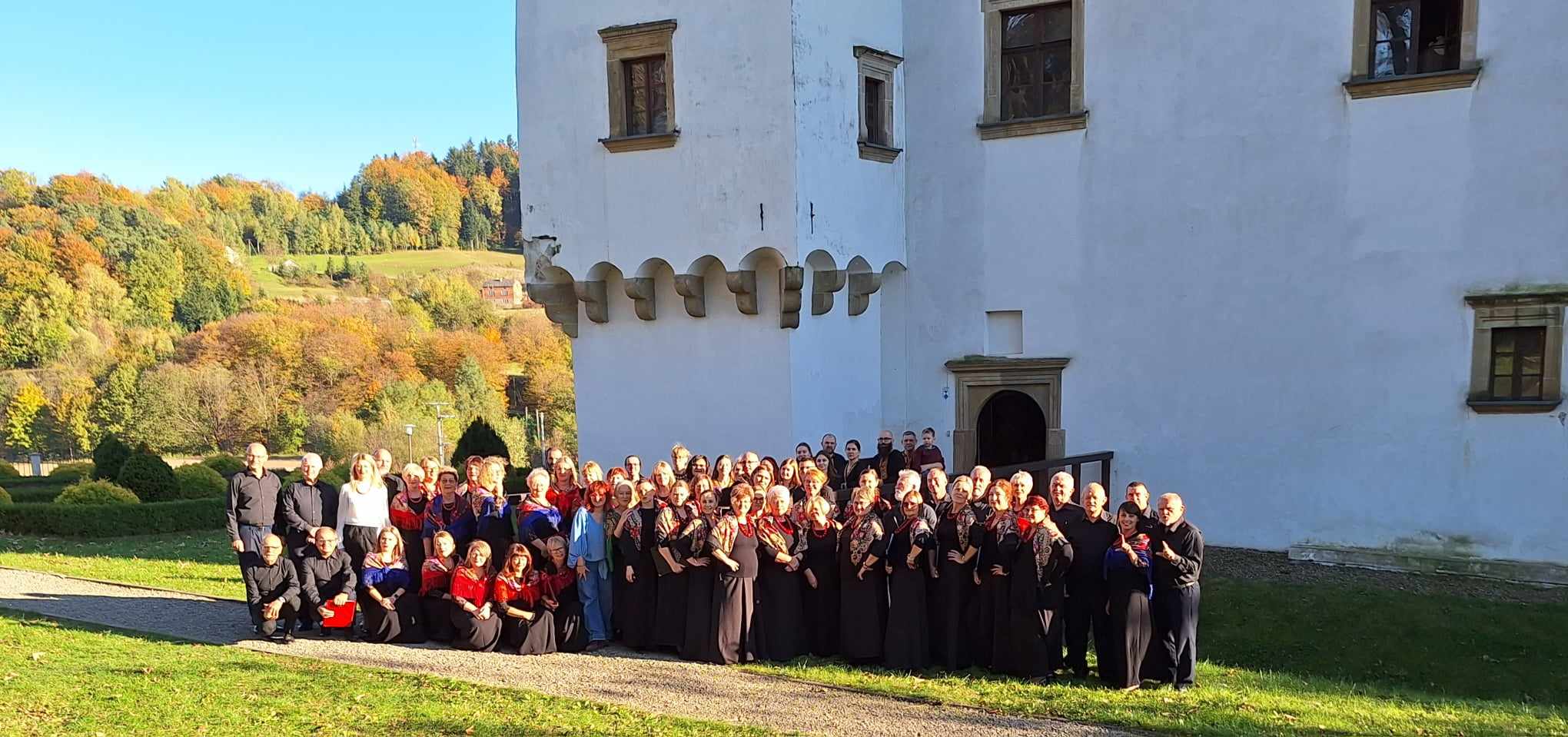 W sobotę 19 października, na zaproszenie chóru Cantores Carvatiani z Gorlic wzięliśmy udział w projekcie „Splot Łosie po głosie” – łączymy, splatamy i razem śpiewamy!. Była to inicjatywa muzyczno-edukacyjna, wspierana przez Karpacką Inicjatywę Lokalną, współfinansowana ze środków Rządowego Funduszu Inicjatyw Obywatelskich NOWEFIO na lata 2021-2023, realizowana za pośrednictwem Stowarzyszenia „Pro Carpathia”. Nasz kontakt z gorlickim chórem datuje się od 2019 roku, kiedy nasze artystyczne ścieżki splotły się na festiwalu Balkan Folk Fest w Warnie. Sam udział w projekcie obrał formę warsztatowo – koncertową w czasie której mieliśmy spędzić 2 godziny na zajęciach z techniki, emisji głosu, współbrzmienia oraz interpretacji utworów. W budynku strażackiej remizy w Łosiu, spędziliśmy dwie godziny zajęć pod kierownictwem Luci Beresovej z Barcelony. Jako wybitny fachowiec z dyrygentury, prowadzący kilkanaście chórów – przez dwie godziny zajęć poprowadziła nas przez tajniki chóralistyki, dając sporą cząstkę swojego talentu i doświadczenia.