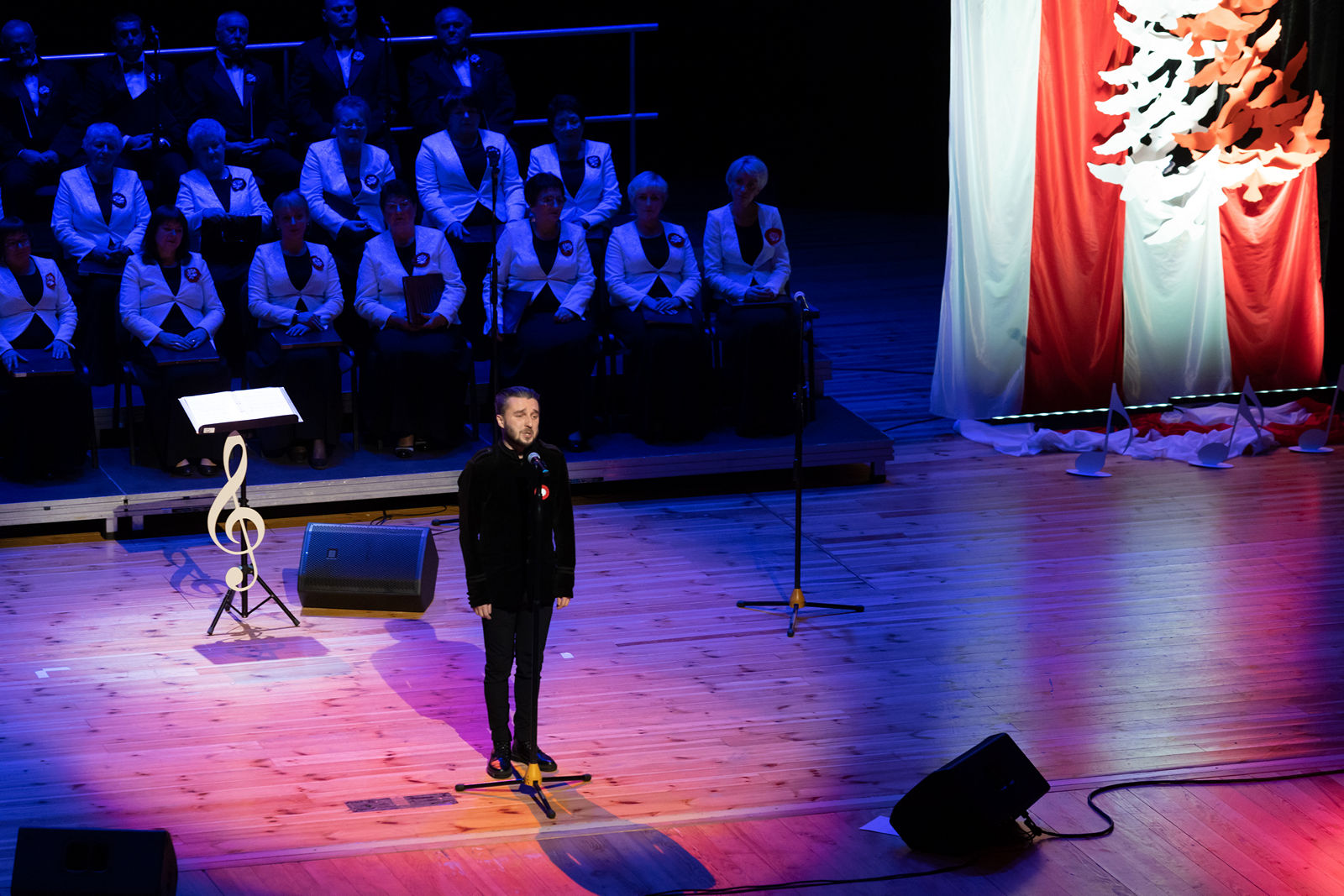 Pani dyrygent skutecznie animowała do wspólnego śpiewu zgromadzoną publiczność, wykorzystując przygotowane na ten koncert slajdy z tekstami prezentowanych utworów. W widowni jak również ze sceny widać było doskonałą współpracę muzyków jak również z samą dyrygent. Z widowni płynęły gromkie brawa, a finałem był utwór „Póki Polska żyje w nas” w wykonaniu Alana Bochnaka z chórem. Wieczór zakończyły podziękowania, kwiaty i tradycyjny bis. Koncert prowadził niezawodny Stanisław Jagiełło.